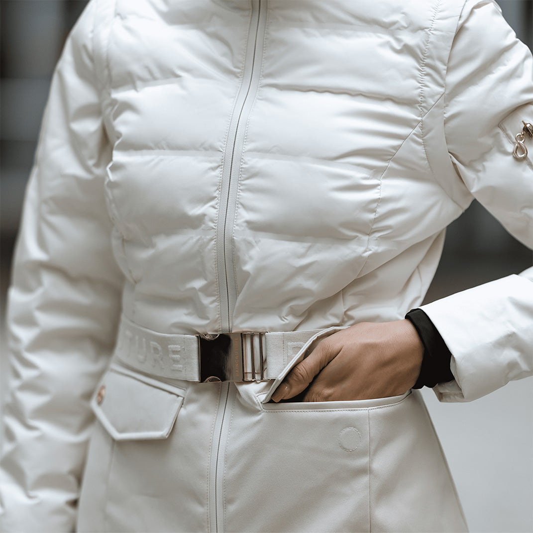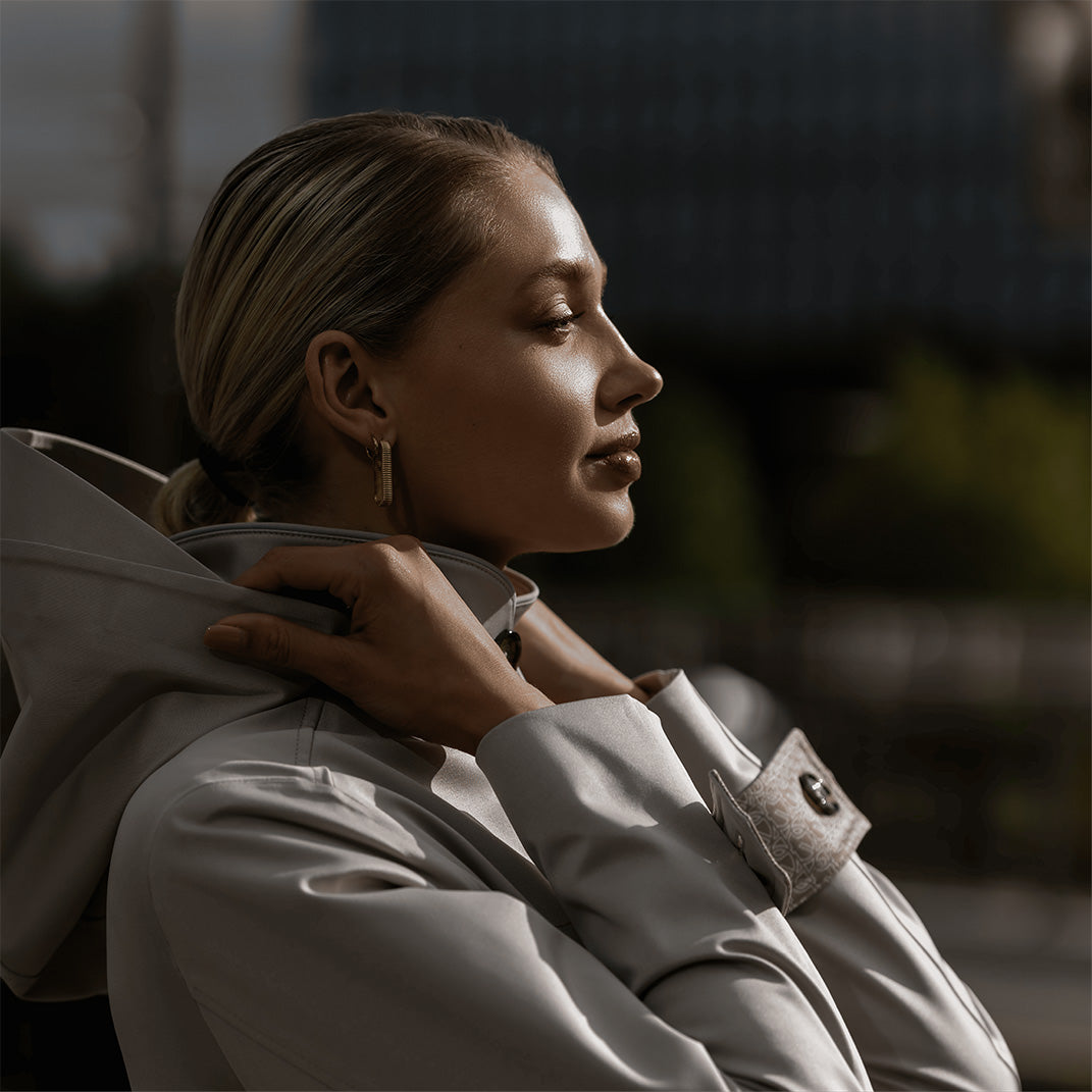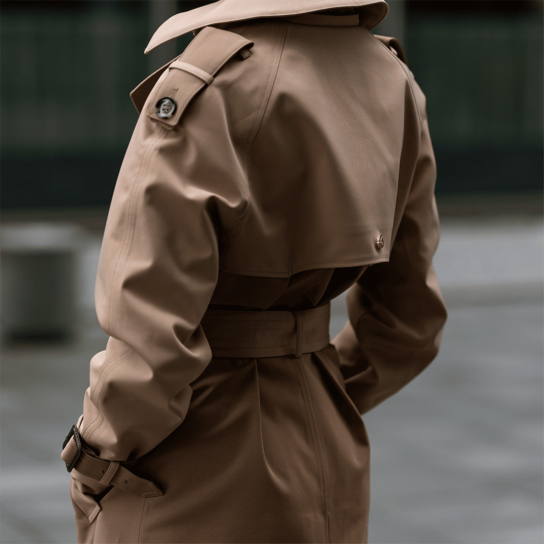 Each season, we infuse new colours and fabrics, elevating the quality even further. We meticulously scrutinise every aspect of our coats, seeking ways to perfect the fit, functionality, and feel of the fabrics. This continuous refinement process is evident in the exquisite stitching, the luxurious feel of the fabric that whispers quality rather than shouting 'rainwear', and the structured, body-embracing design.