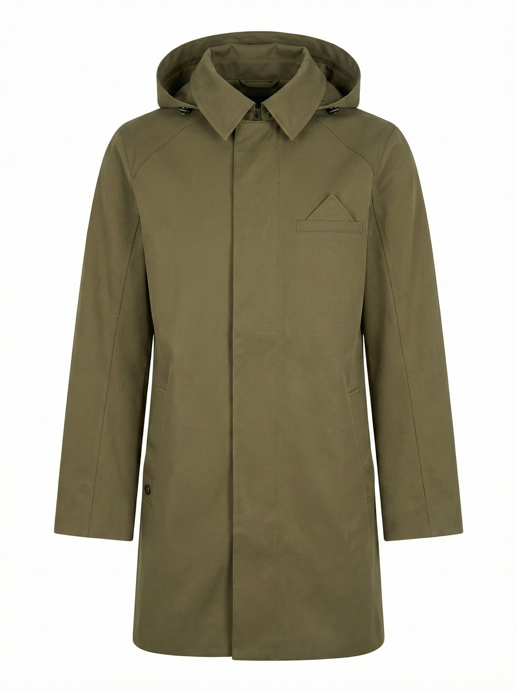 Men needed a modern, sophisticated trenchcoat that combines elegance and durability. Inspired by the traditional long trench, we created a raincoat with a clean, contemporary outlook and hidden front buttons, adding a stylish twist to a classic design.