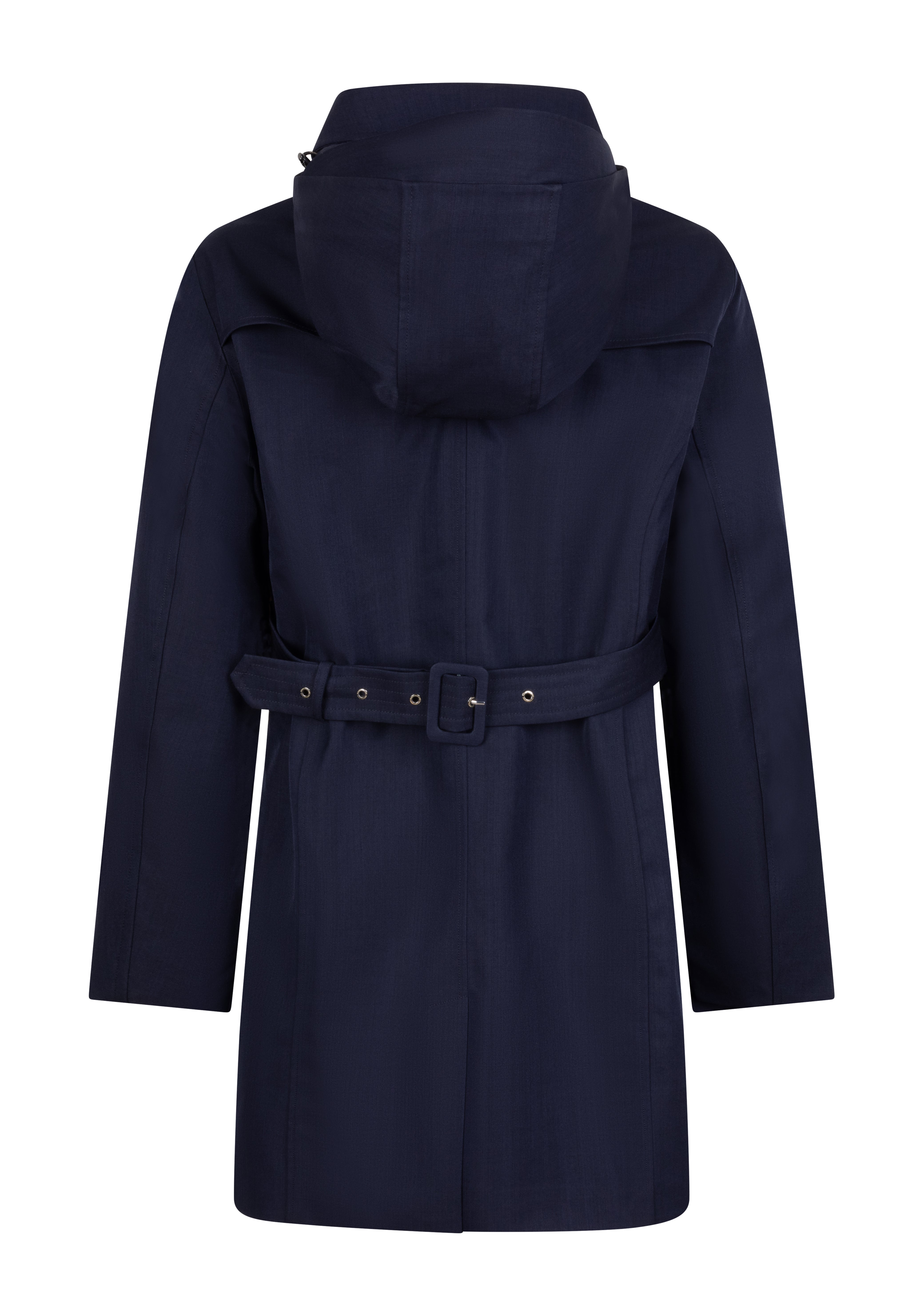 Features a zip-off hood, shaped cuffs to protect your hands from the rain, and a central buttoning covered with a flap for a sleek appearance. With a blend of elegance and functionality, it includes a deep inner pocket and a traditional storm closure to keep you dry and stylish.
