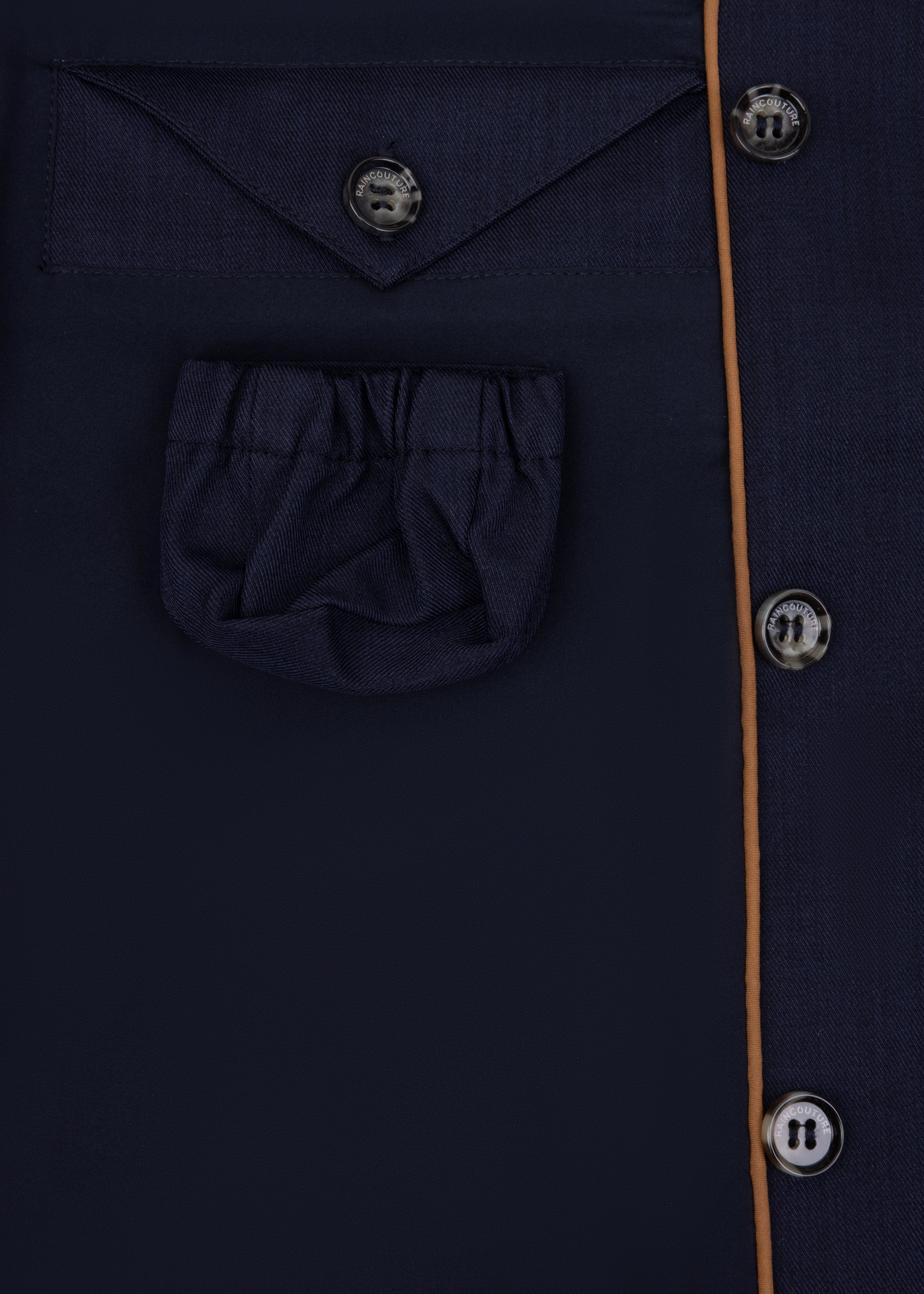 The inner linings, trims, collars, cords, pullers—every accessory you see on a Raincouture product—are not just additions but an integral part of our ‘design process’ that make the experience of wearing Raincouture so special.