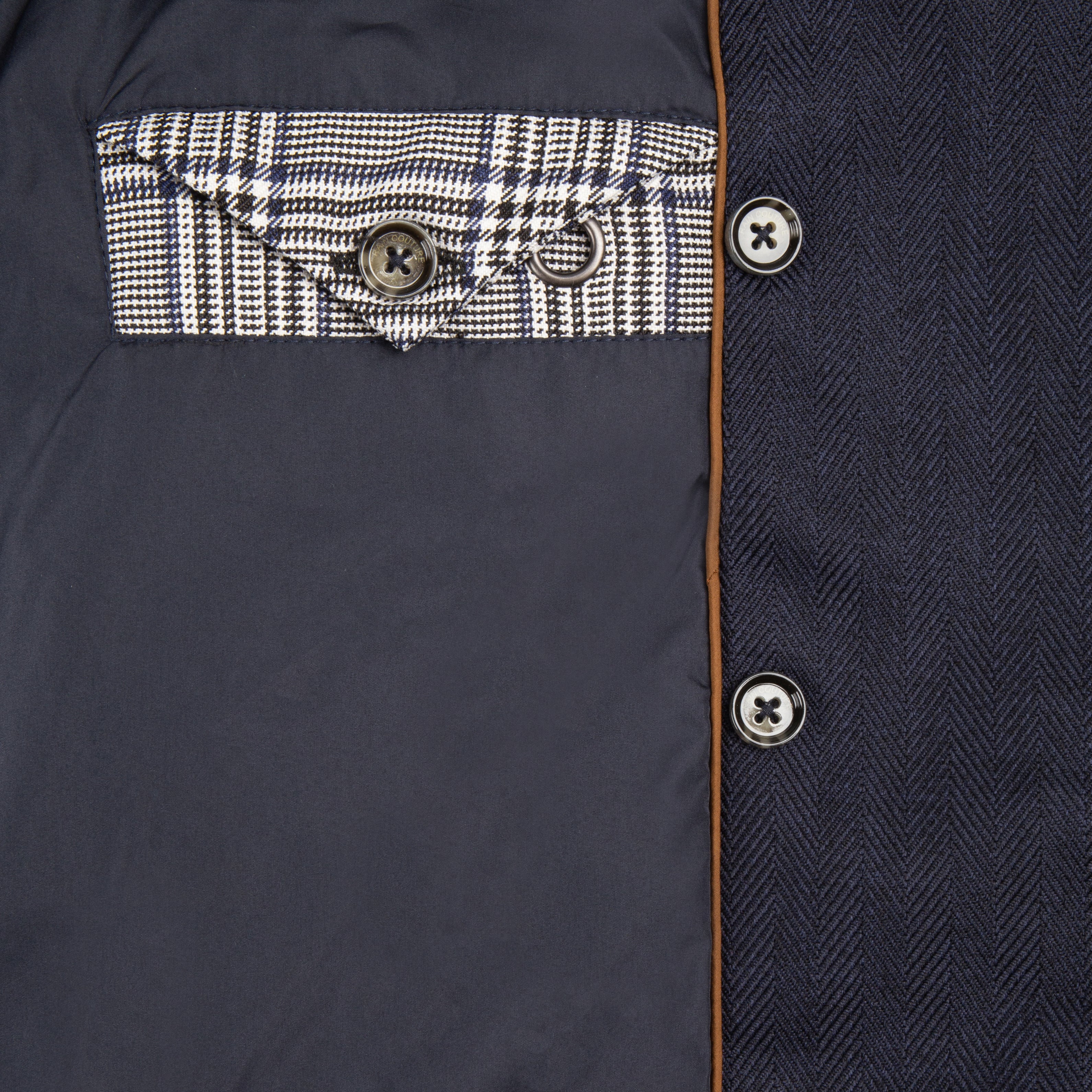 Features a zip-off hood, shaped cuffs to protect your hands from the rain, and a central buttoning covered with a flap for a sleek appearance. With a blend of elegance and functionality, it includes a deep inner pocket and a traditional storm closure to keep you dry and stylish.