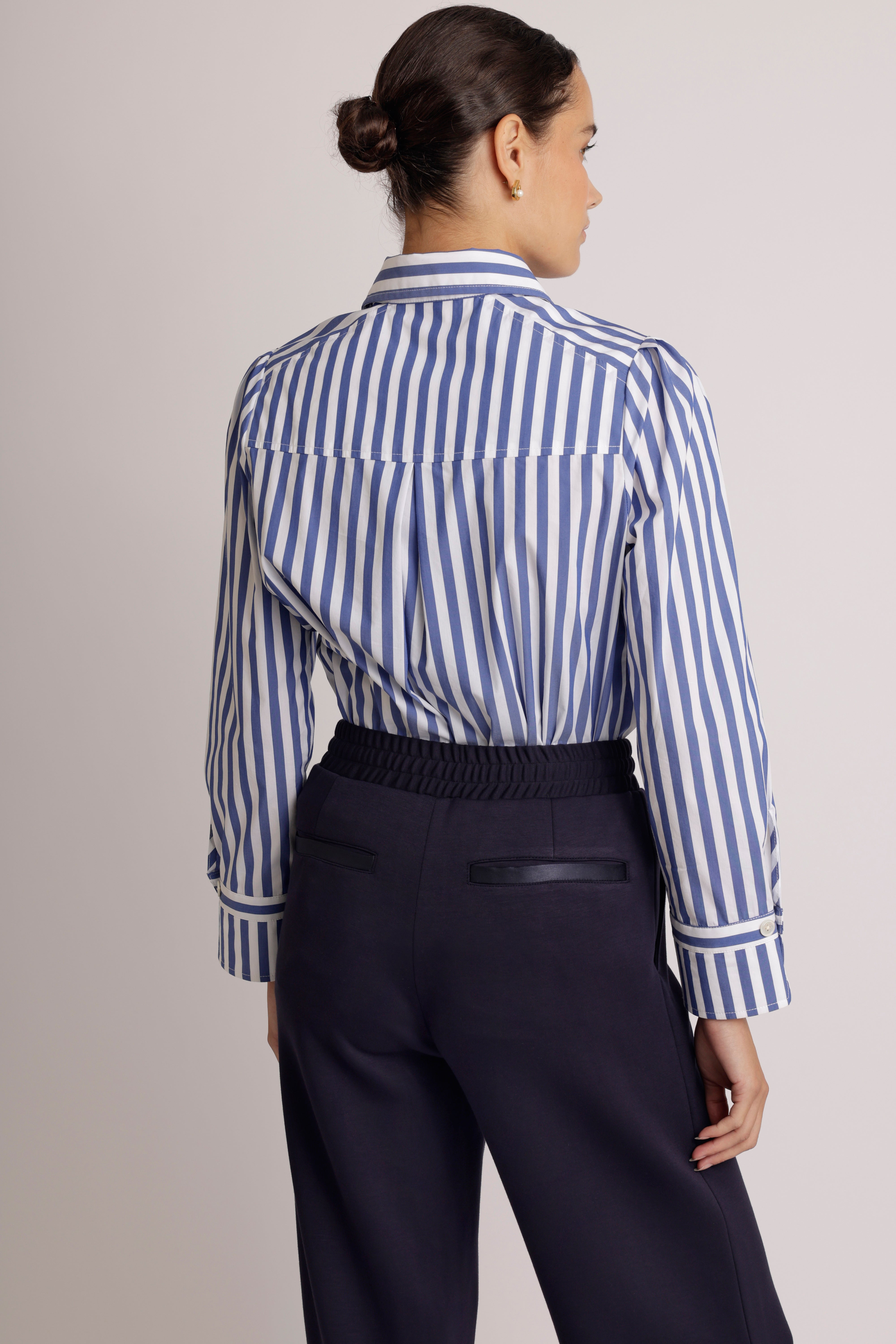No-Iron Everyday Stretch Blouse | White-Blue Striped