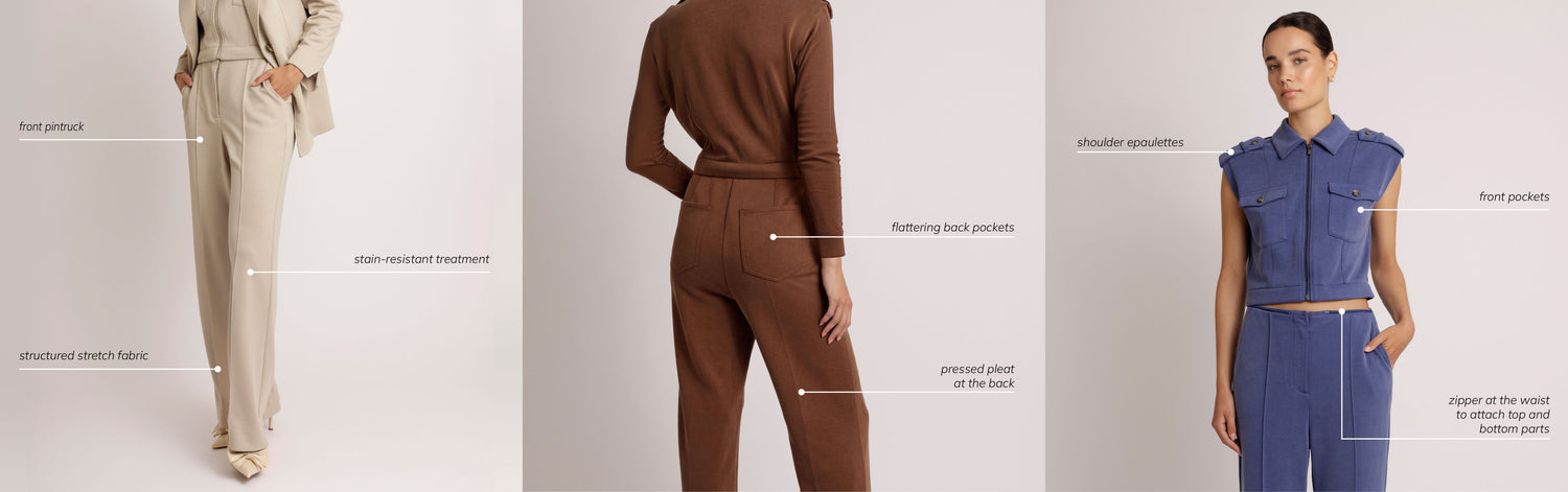 A chic, tailored jumpsuit with a hidden waist zip for quick changes and all-day comfort. Feminine in silhouette, clever in design, and iconic in how effortlessly it moves from boardroom polish to evening play.