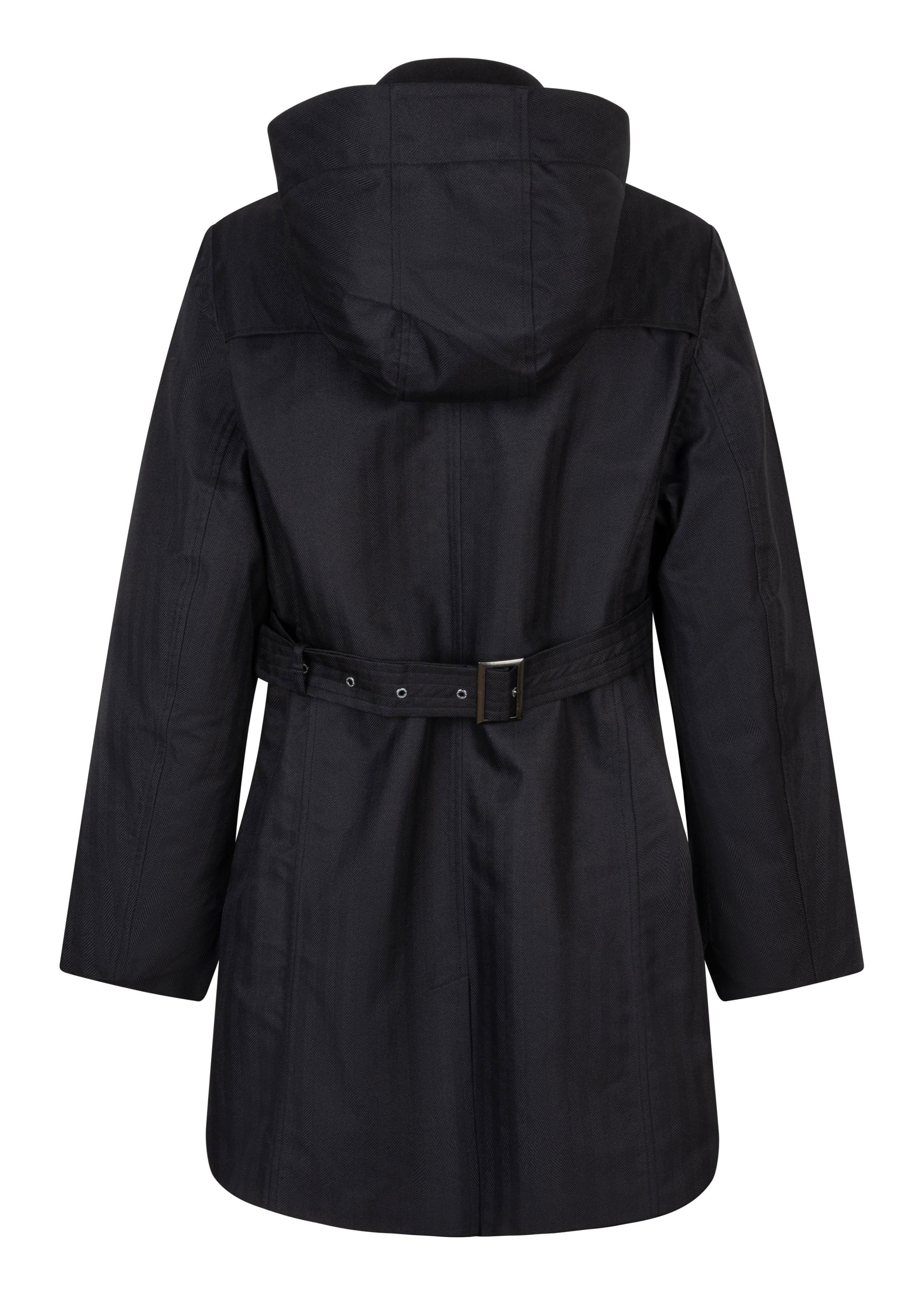 Features a zip-off hood, shaped cuffs to protect your hands from the rain, and a central buttoning covered with a flap for a sleek appearance. With a blend of elegance and functionality, it includes a deep inner pocket and a traditional storm closure to keep you dry and stylish.