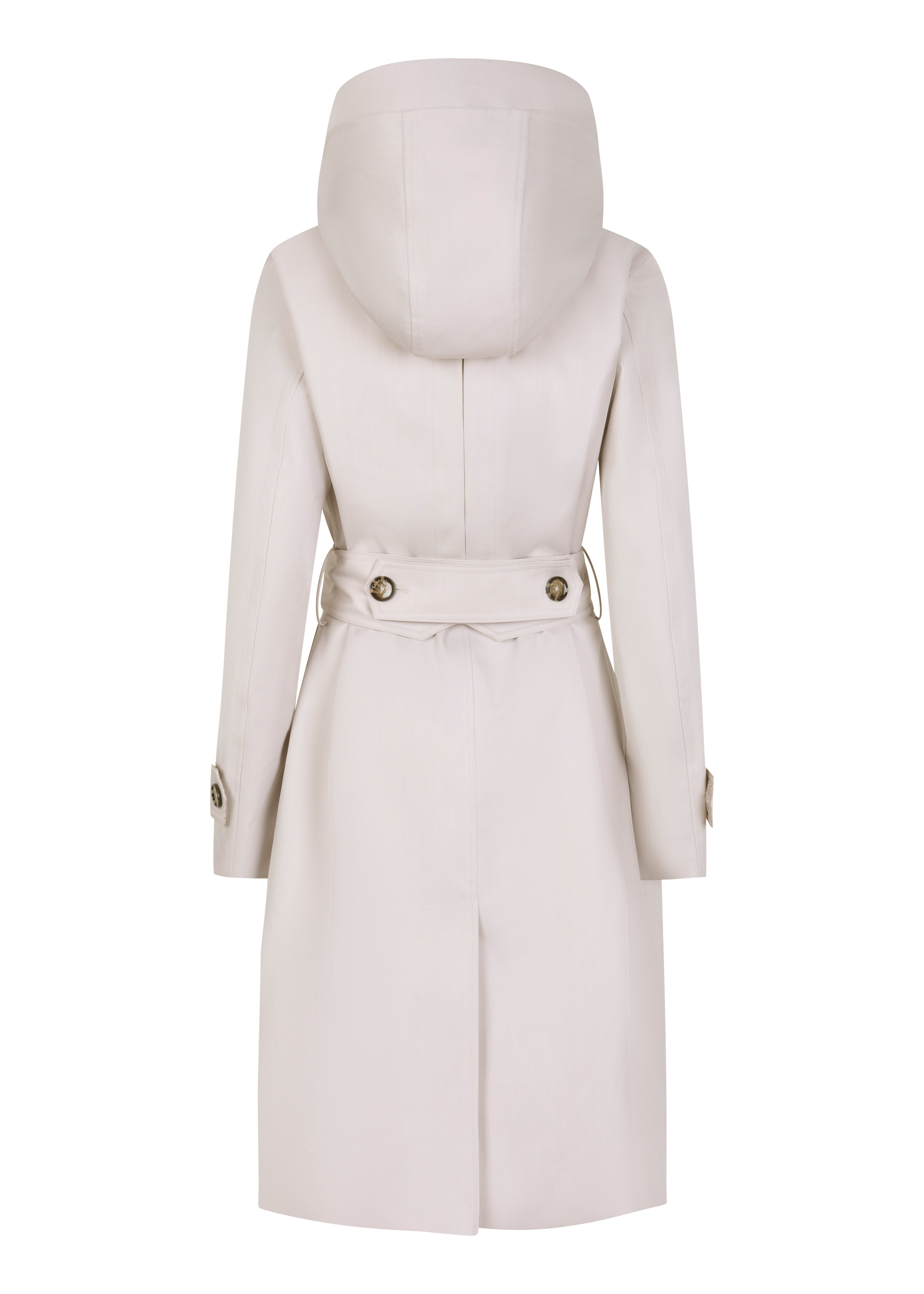 Two-way adjustable zips to ride your bike with convenience. Adjustable belt that goes from 'straight' fit to 'tailored' fit. Plush waterproof fabric. Headphone connection eyelet inside. Detachable hood, body warmer buttons, air ventilation eyelets and everything that’s timeless, chic and functional.