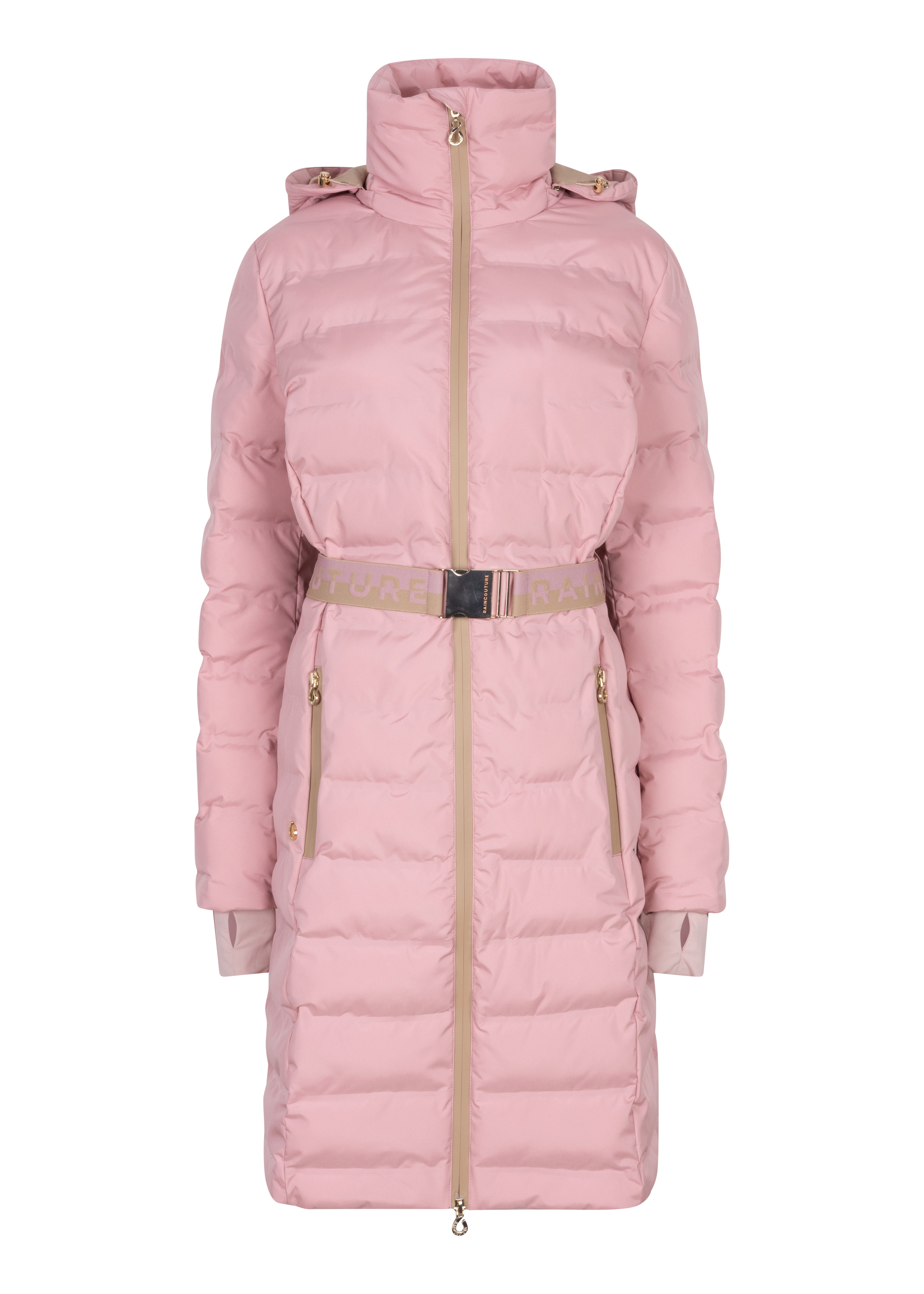 A tailored puffer jacket that's sporty yet feminine and very warm for cold, snowy days is a must-have for when you're hitting the slopes or navigating the city. Enhance your shape with the belt or go casual without.