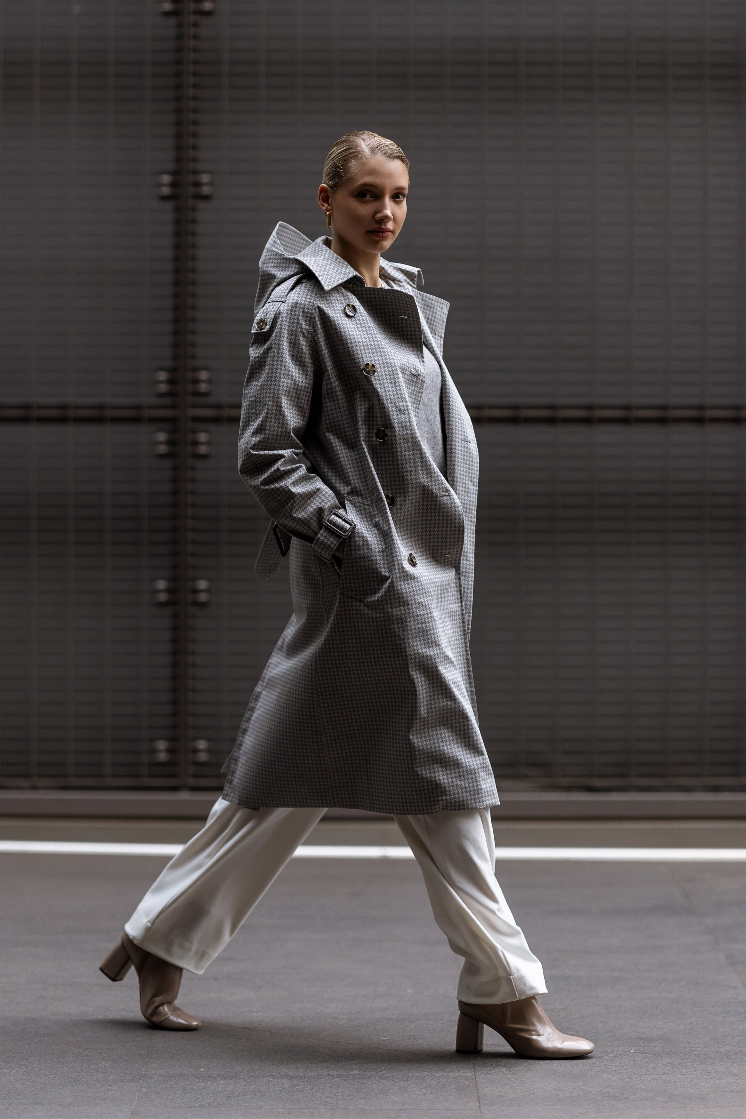 You needed a versatile, double-breasted coat that offers a fitted silhouette and structured shoulders, perfect for both rain and shine. And there was none! We made this inspired by the classic soldier look and the elegance of 1800s corsets to embody sophistication, style, and functionality in one.